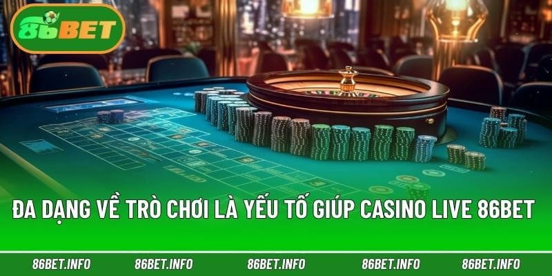 Đa dạng về trò chơi là yếu tố giúp casino live 86bet giữ vững sức hút