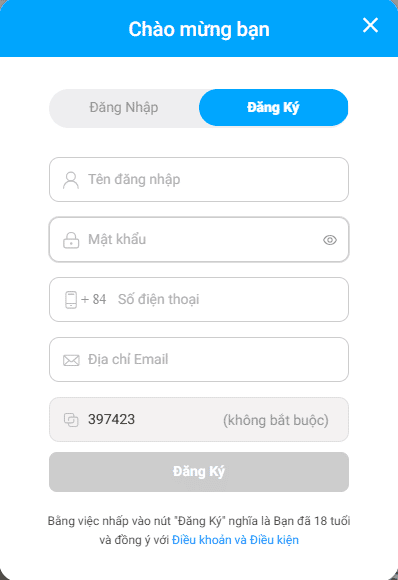 Sau khi nhấn chọn Đăng Ký, hệ thống hiển thị ra bảng Đăng Ký. Các bạn điền đầy đủ thông tin theo yêu cầu.