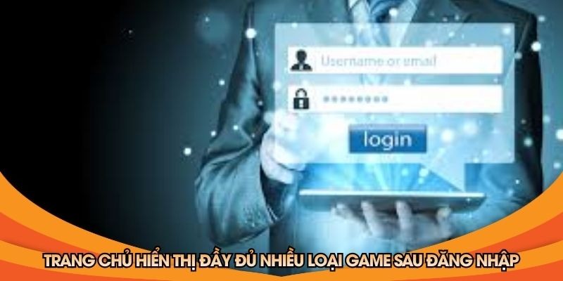 Trang chủ hiển thị đầy đủ nhiều loại game sau đăng nhập