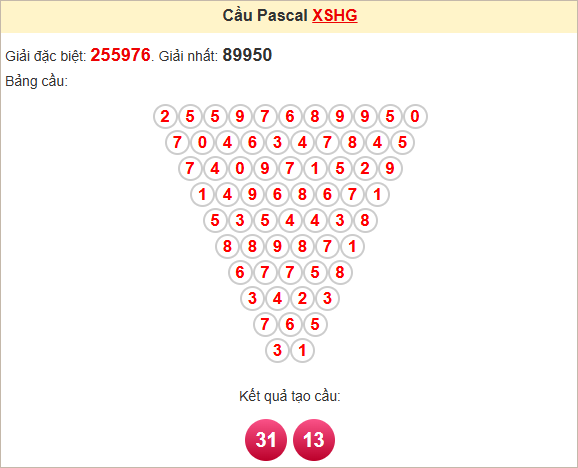 ⭐️ Kết quả nhận được từ soi cầu Pascale là cặp số may mắn: 31 - 13