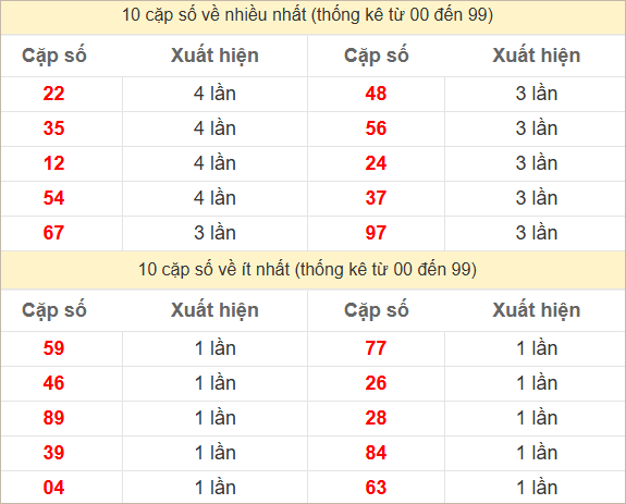 2 số cuối giải đặc biệt về nhiều nhất và ít nhất