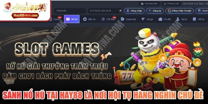 Sảnh nổ hũ tại HAY88 là nơi hội tụ của hàng nghìn chủ đề hấp dẫn