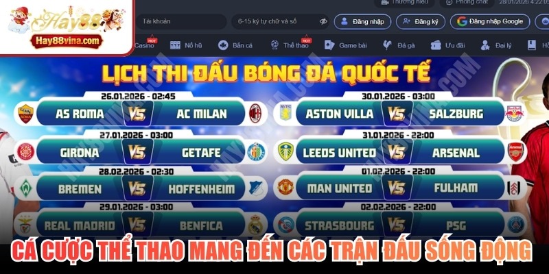 Cá cược thể thao mang đến các trận đấu sống động kịch tính